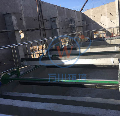 鏈板式刮沫機主要由減速機,傳動裝置,刮板,主從動軸,鏈條及鏈條托架組成。結(jié)構(gòu)簡單,使用方便,性能穩(wěn)定。減速機可調(diào)速或定速。